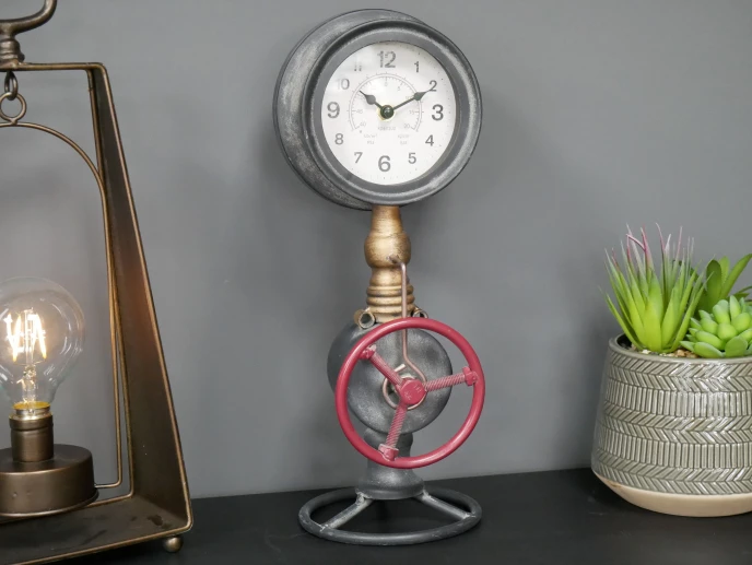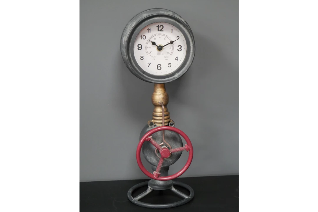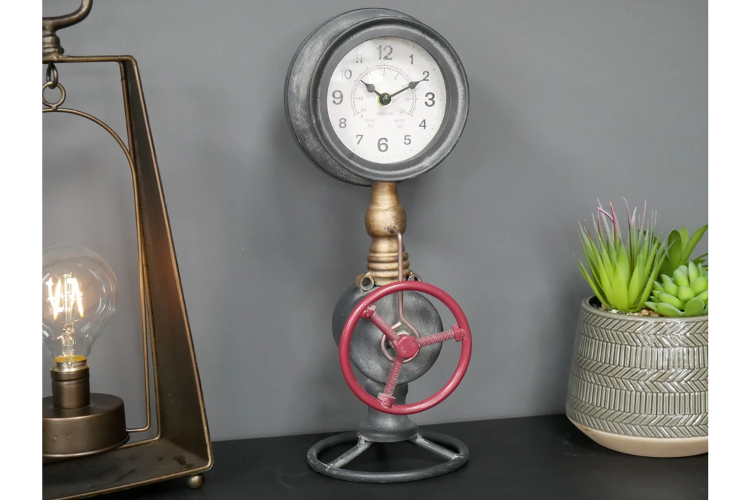 Industrial style pipework clock. Crafted from lightweight metal and given an ultra rustic finish in black/gold. Unusual, quirky and oozing vintage charm!