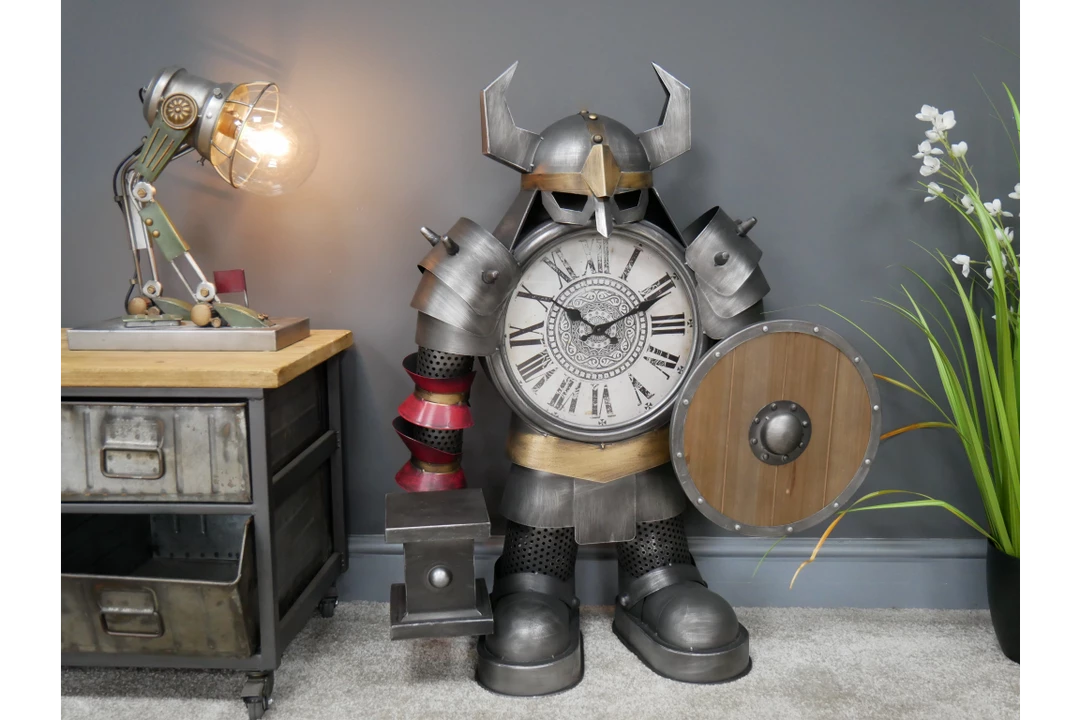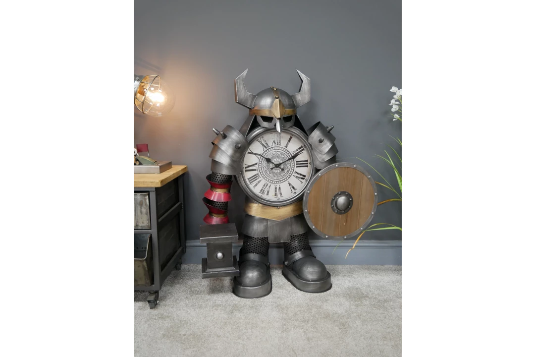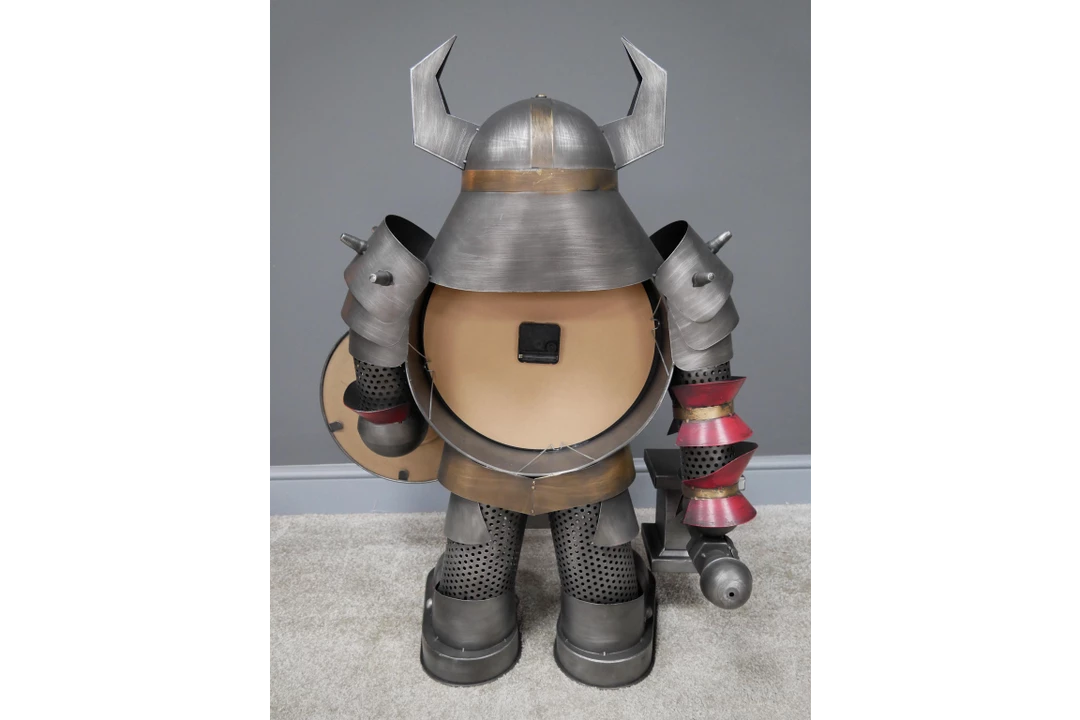 For big fans of the unusual and creative stuff. Bring out your inner warrior with this colossal Viking warrior clock. This striking clock is encased by a warrior statue made from metal to offer an edgy style to your normal household wall clocks. With roman numerals used for the clock face and delicate black clock hands, it creates a fun way to tell the time!