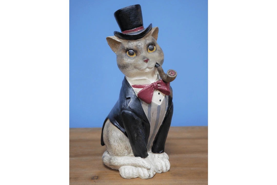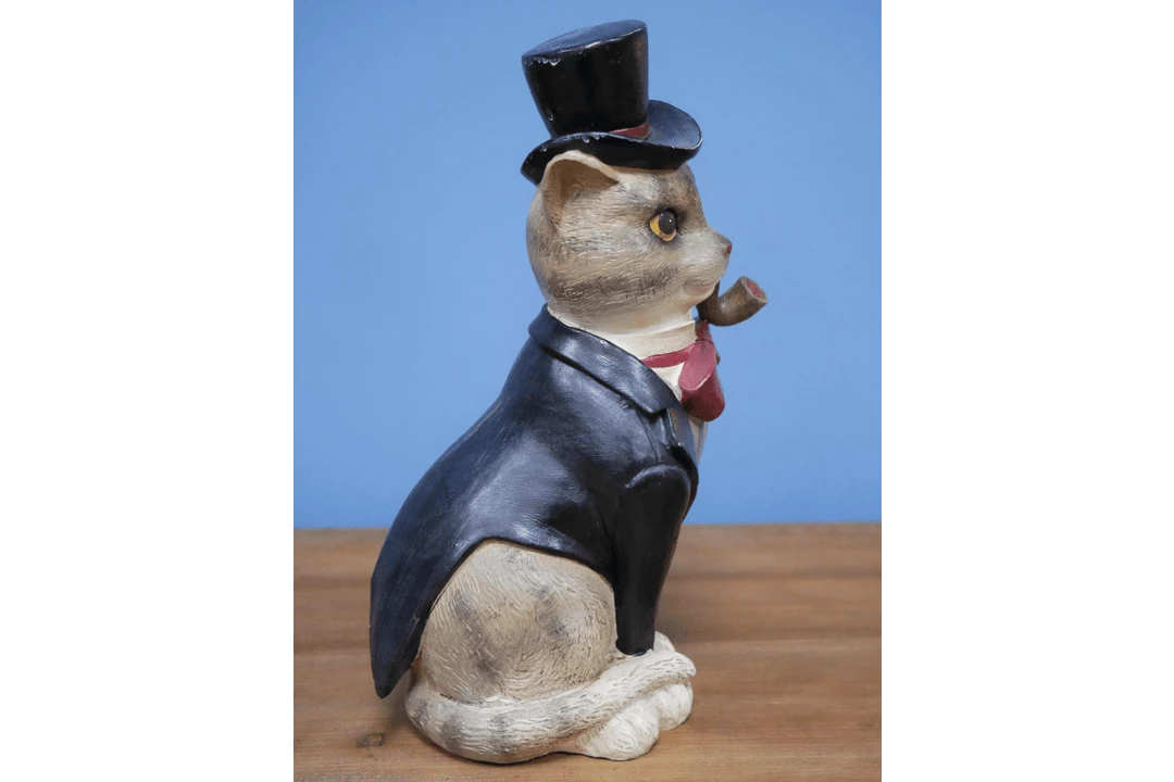 Do you or someone you know love Cats? Then this is the puuuuurfect gift. We all have a shelf that needs that special something, a window sill that needs a lift or a side table that is crying out for a small piece of a decorative ornaments. This fancy fellow brilliantly dressed in all finery top to toe enjoying his pipe. Add a personal touch to your home or garden with unique ornaments.