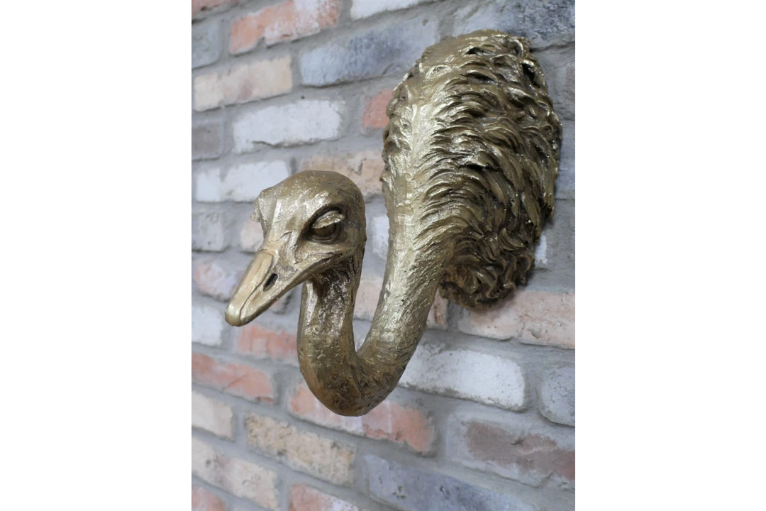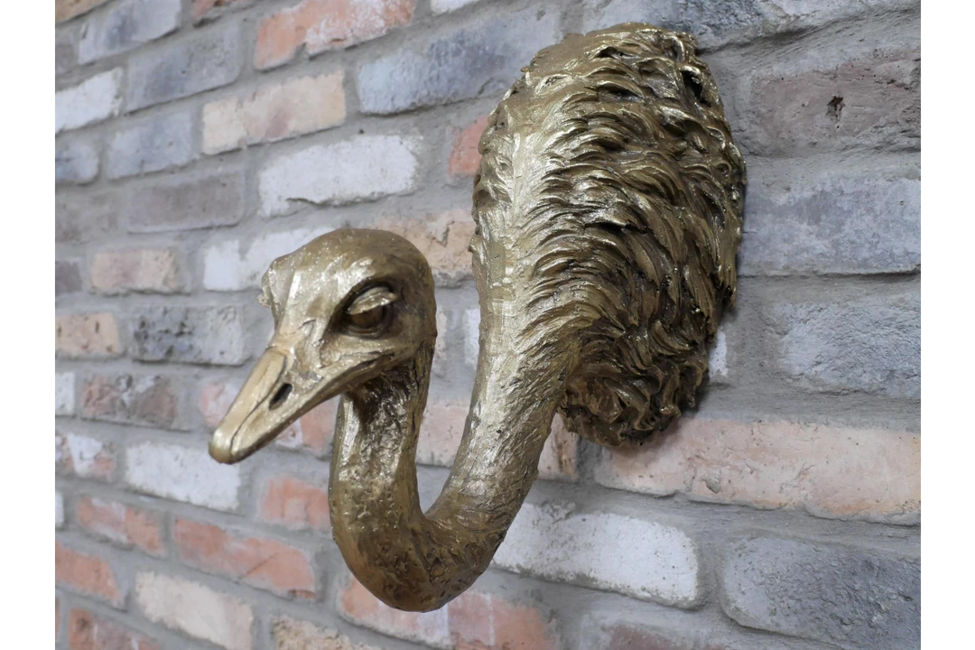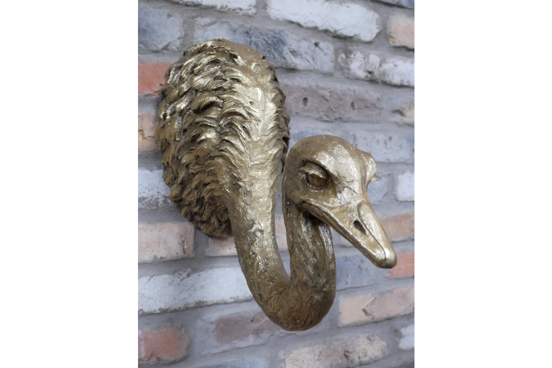 A quirky piece of wall art that adds glitz and glamour to the walls of your home, the Gold Ostrich Head Wall Decoration is a real character! This fantastic head in the sand Ostrich Display Piece is perfect for adding an eclectic touch to a home and is sure to catch your guests eye as soon as they walk into the room, showcasing your bold sense of style.