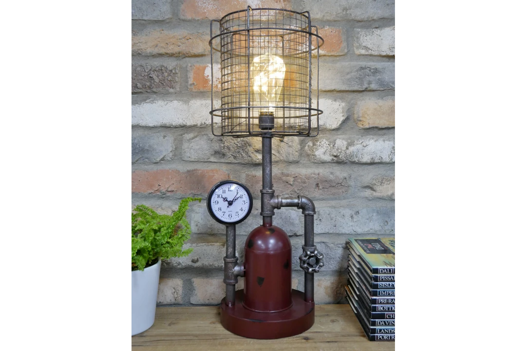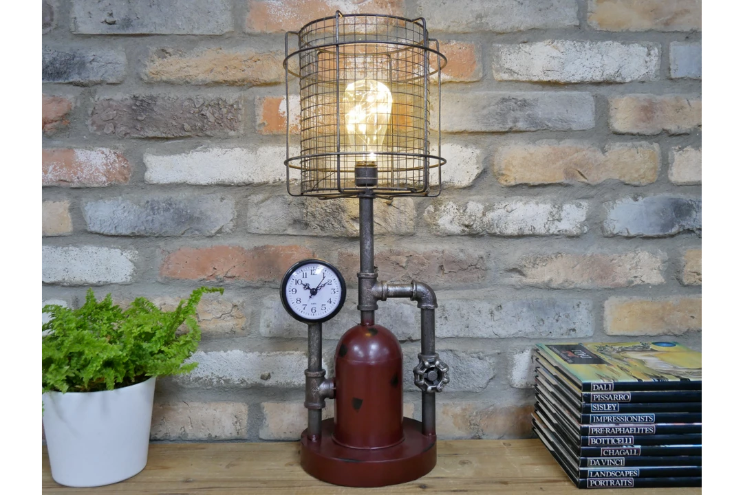Dutch Brothers INDUSTRIAL RETRO STYLE TABLE LIGHT WITH CLOCK GENERAL GIFTS