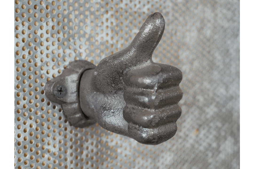 Great your guest with a thumbs up when hanging there coat or accessories. A sleek and out of the ordinary design to an otherwise mundane feature. Blend this thumb hook into your decor tuning something visually appealing and practical. Sure conversation starter.