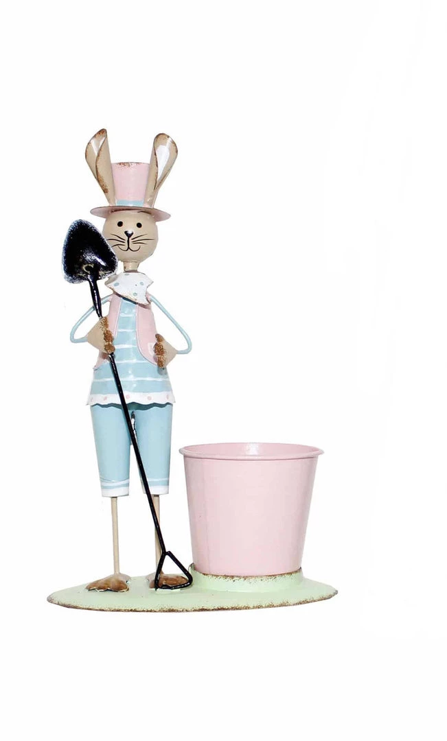 Easterify* your home for Easter with the perfect, most cutest seasonal decorations! This clever made little bunny will make the best little plant pot decor. Cut from metal and hand painted in pastel tones.