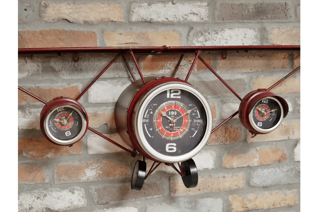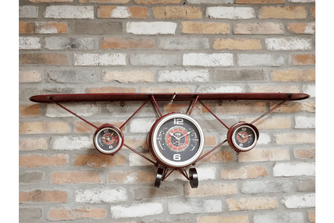 Strikingly modelled on a cargo aeroplane this clock gives all new meaning to “how time flies”! Distressed metal featuring three separate clock dials adding character to any room you decide to place it in. The wall mounted design means that the wings of the plane can also be used as a shelf for small items.
