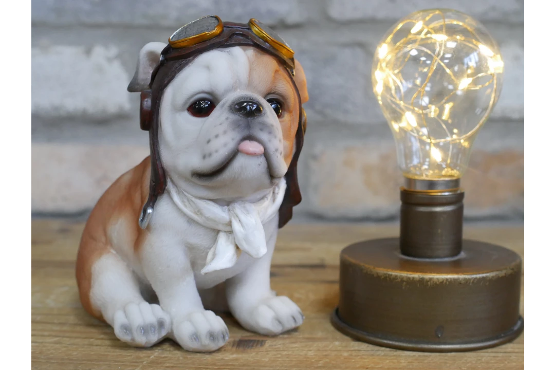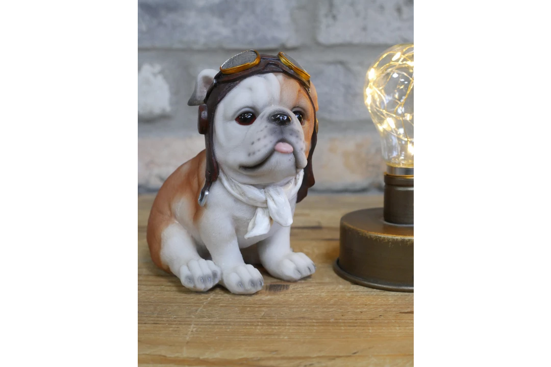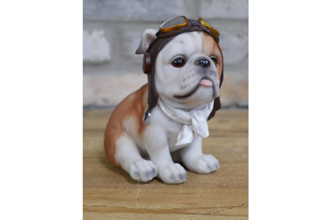An adorable dog pilot figurine wearing the latest in puppy fashion – an old fashioned flying hat and goggles! This animated statue of ‘mans best friend’ fabulously coloured and finished, including wet look eyes and nose, make this ornament extremely lifelike.