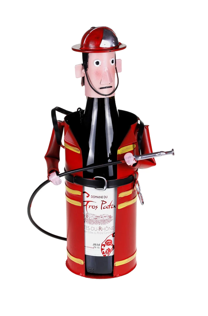 Novelty Firefighter Wine Bottle Holder looks like he is ready to put out the flames. Add your favorite bottle of wine and this becomes the perfect gift for any fireman.