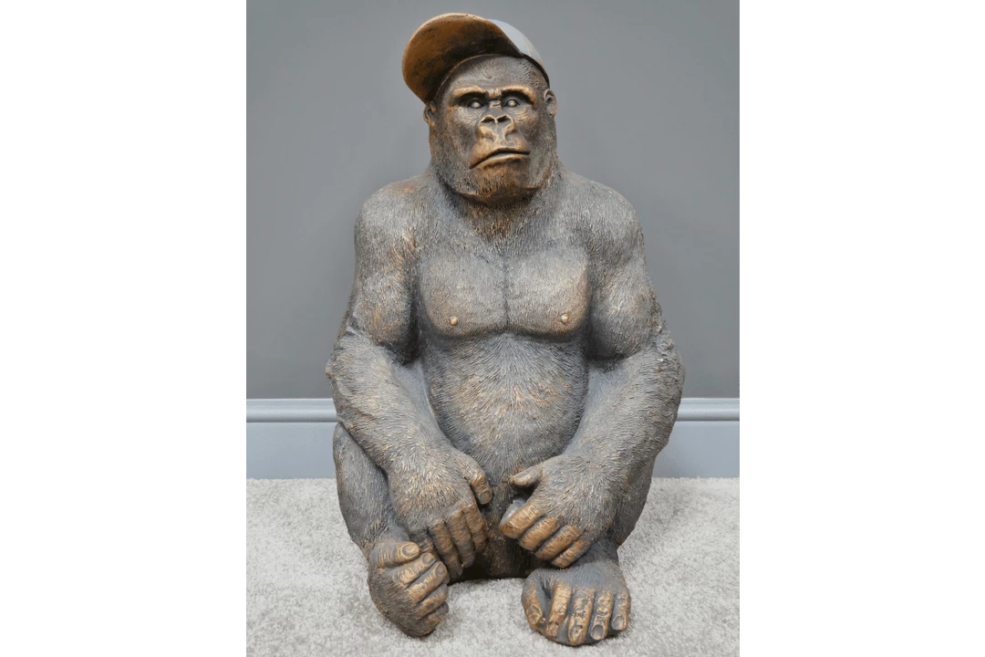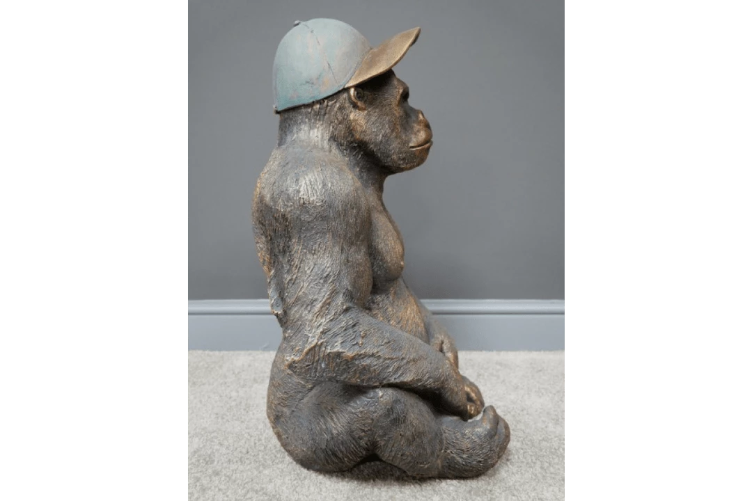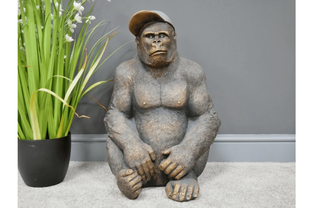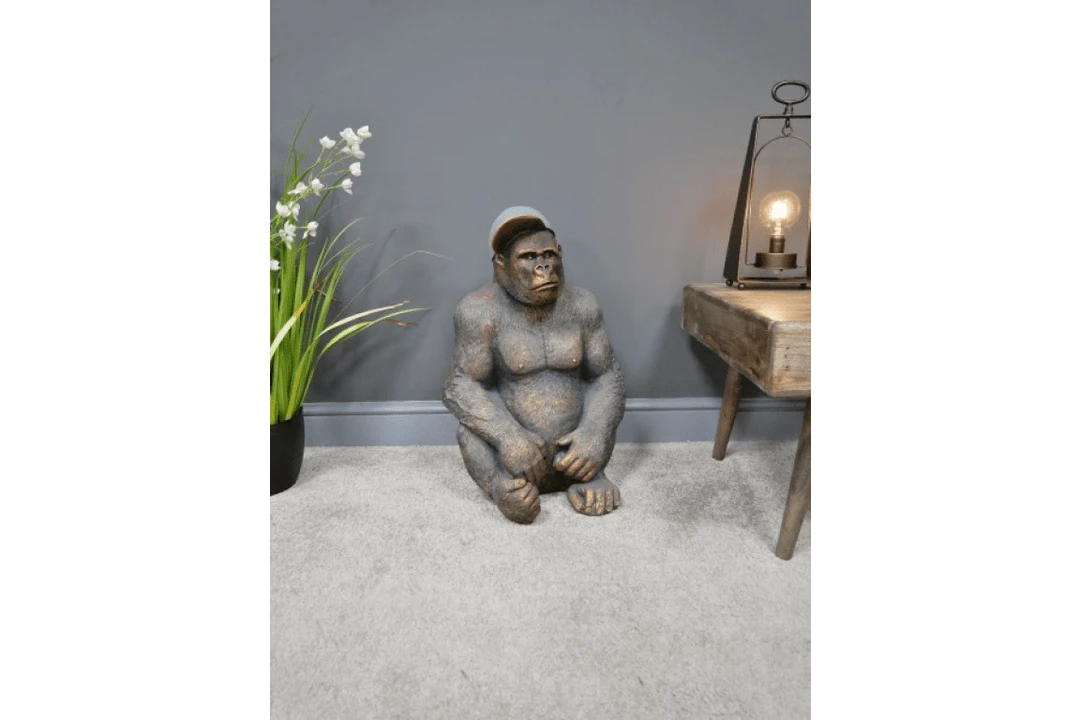 Get a load of Gavin commanding your attention…He’s moulded from tough MGO to a pretty much actual size and very lifelike detail from the detail on his very muscular chest right down his fingernails and hands. Gavin the Gorilla ornament is an impressive statement piece which would really stand out in any setting. Complimented sporting a peaked hat which makes him all the more adorable, most definitely will have your guests talking.