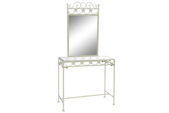 This mirror and console set flaunts a dainty white finish that is sure to bring a touch of modern glamour to your living space. It features a vanity mirror Flaunting circular patterns with flower pattern design. A minimalist design that can easily blend without sacrificing space.