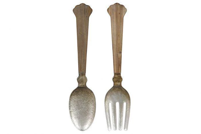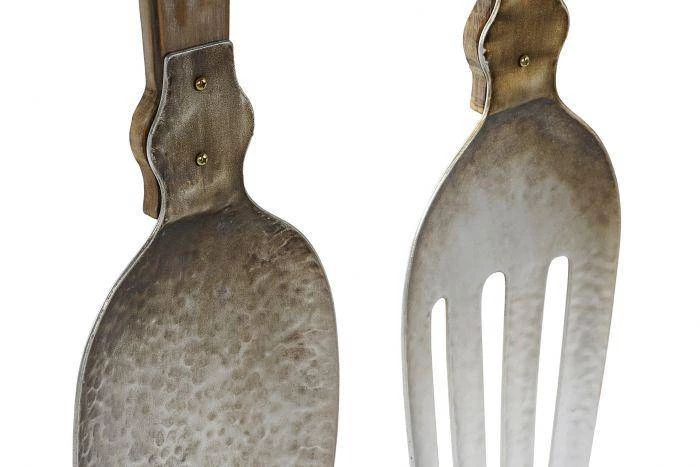 This Large oversized cutlery set made from metal and wood is perfect wall decoration for any Kitchen.