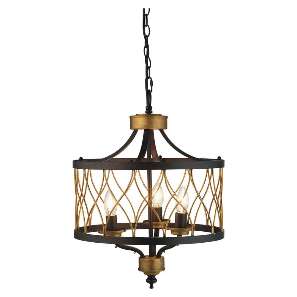 Illuminate your home with the beautiful and contemporary vintage Elvar 3 Light Ceiling Light pendant. It has in a finish with antique gold detailing. A truly stunning pendant that would look beautiful in any room.