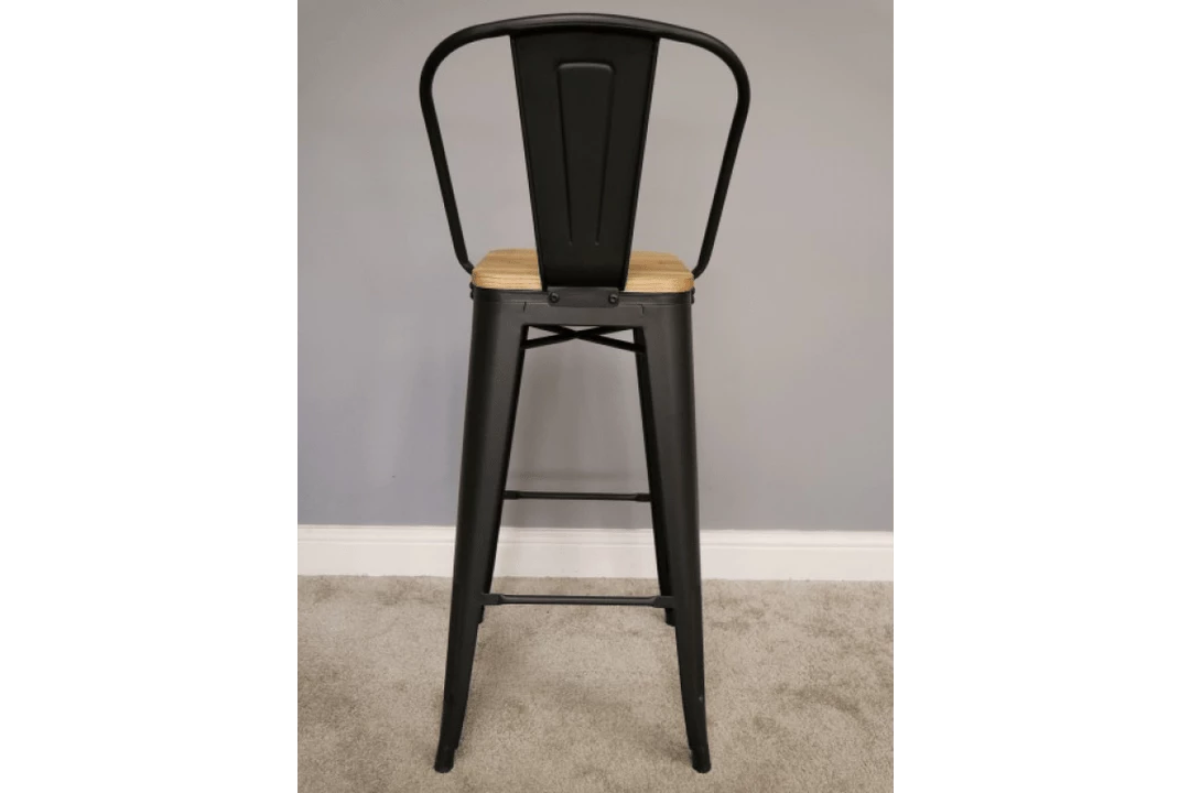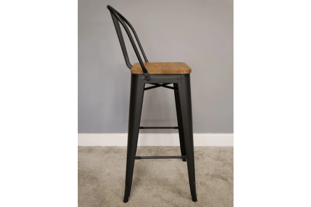 Add a modern industrial appearance to kitchen, dining area with these stylish stools. Made of powder coated steel and elm wood. These modern bar stools are as versatile as they are fashionable.
