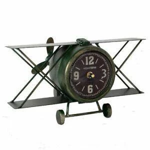 A distinctive, metal mantel clock in the shape of a vintage Biplane, from HOMETIME®. This is the perfect gift for an automotive enthusiast, who likes vintage pieces for the home. This statement clock takes the form of a vintage aeroplane and would look great on a mantelpiece or cabinet. The front of the plane doubles as an easy to read clock face, with an arabic dial and black serpentine hands. It requires one AA battery for use.