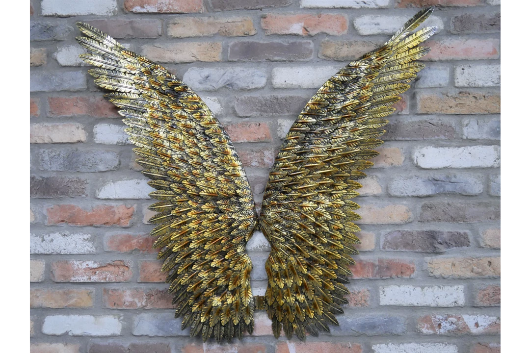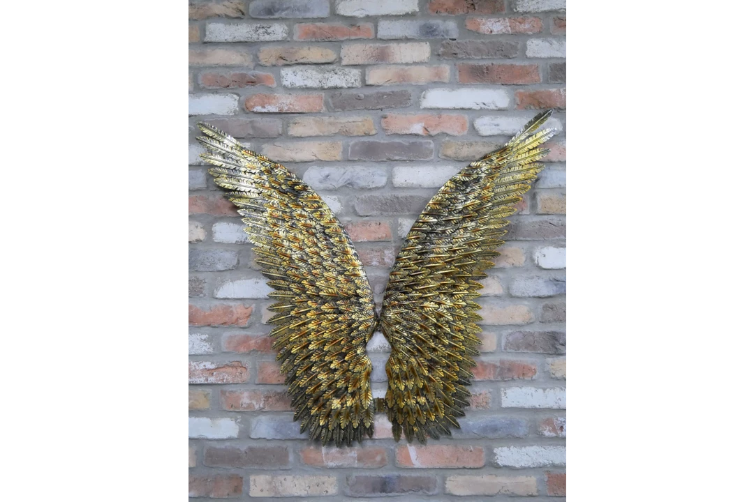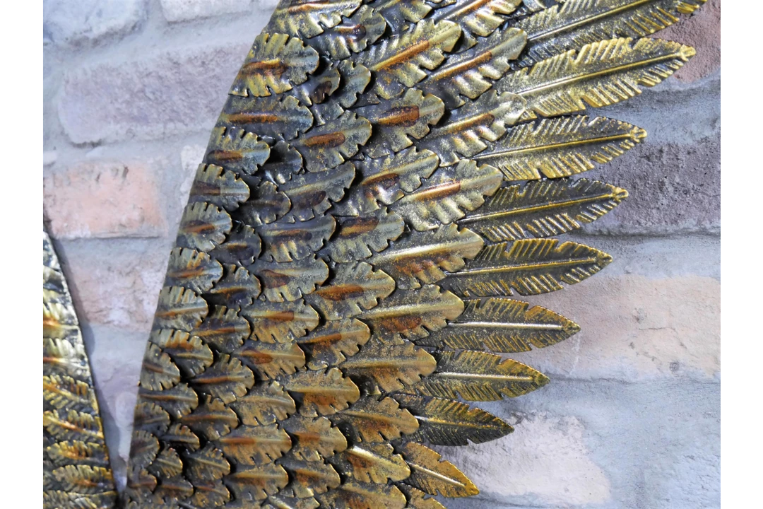 Straight from Cupid’s back, these striking gold angel wings will make a striking piece of wall art and a great conversation piece. Exquisitely detailed feathers add an elegant touch.