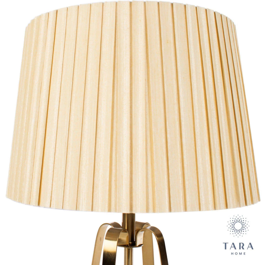 The Sia Geo Lamp is strikingly beautiful with its sculptured geometrically curved and sloping base. Made from bronze-coloured metal it’s an eye-catching design simply finished with an unfussy pleated golden grey shade to add warmth and welcome to any room. Place this designer lighting in a lounge, dining room or bedroom. For extra charm this Lamp would look charming displayed as a pair.
