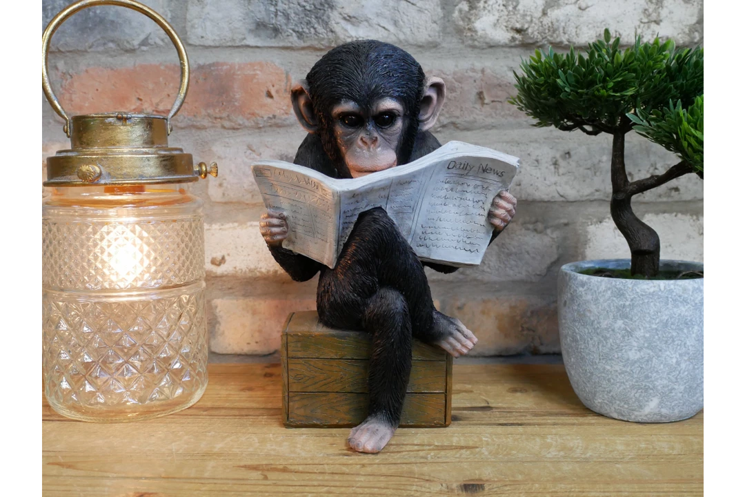 This clever little monkey is a fantastic ornament for any home, with a quizzical monkey sat on a vintage crate, reading the daily rag!