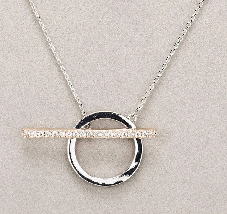 Giftworks Newgrange Living Silver & Rose Gold Diamante T-Bar Necklace GENERAL GIFTS