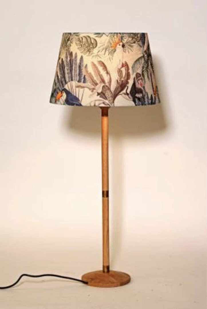 This botanical lamp with cream linen shade, depicting palm leaves, tropical flowers, birds and Monkey’s is right on trend and makes a stunning addition to any home.