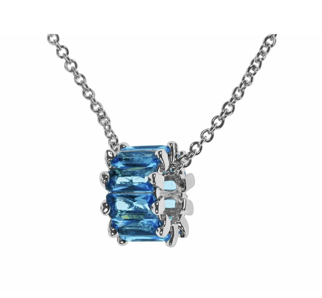 Giftworks Rhodium Aqua CZ Necklace JEWELLERY
