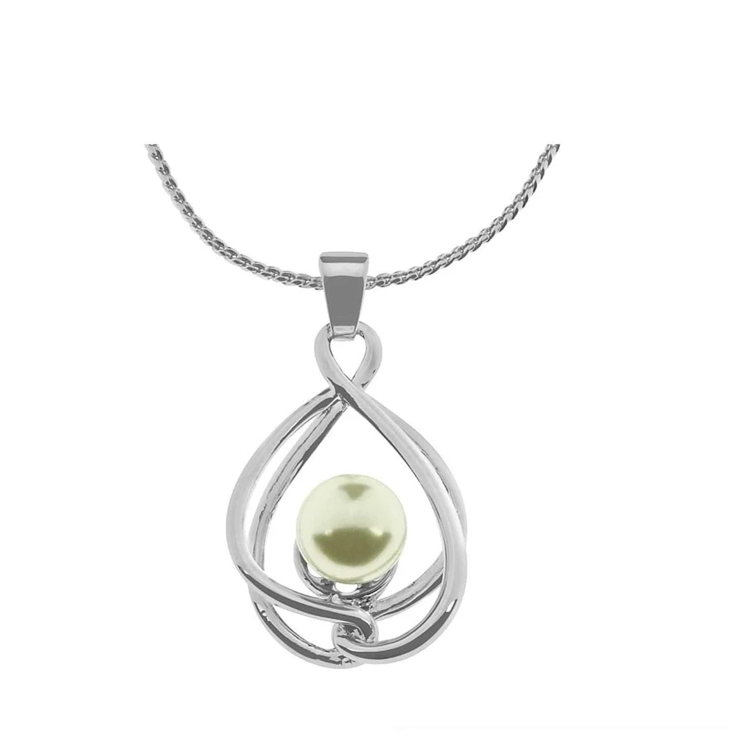 Giftworks Rhodium Weave Shape With Pearl Necklace JEWELLERY