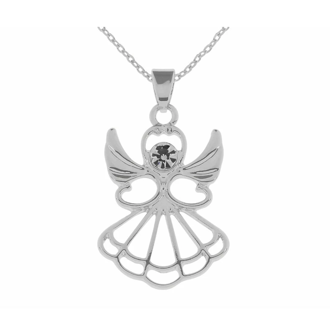 Giftworks Rodium Angel Pendant With Crystal JEWELLERY