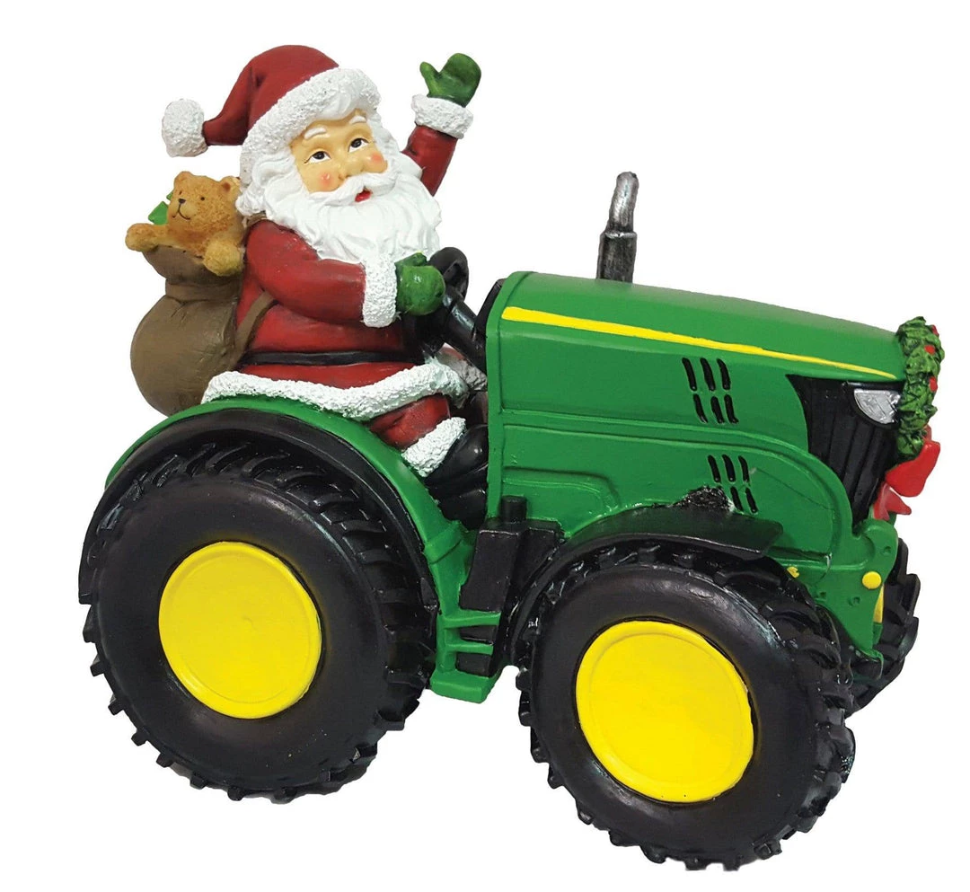 Giftworks SANTA DRIVING HIS JOHN DEERE TRACTOR ORNAMENT