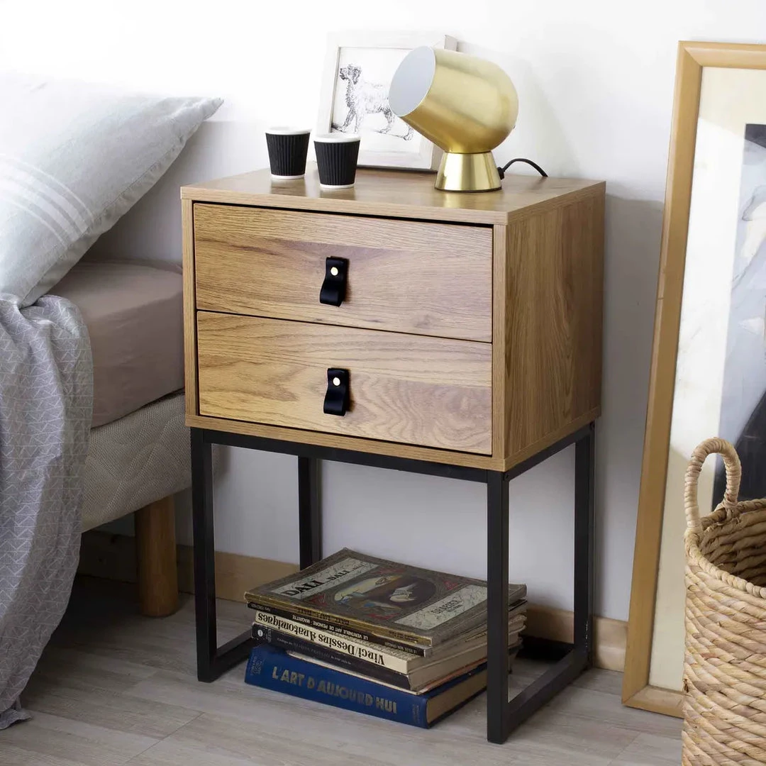 Giftworks Side Table With 2 Drawers With Oak-Effect Metal Legs