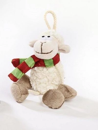 Adorable sitting sheep with scarf. Soft and cuddly with a choice of 2 designs. A adorable soft toy sheep just perfect for small hands.