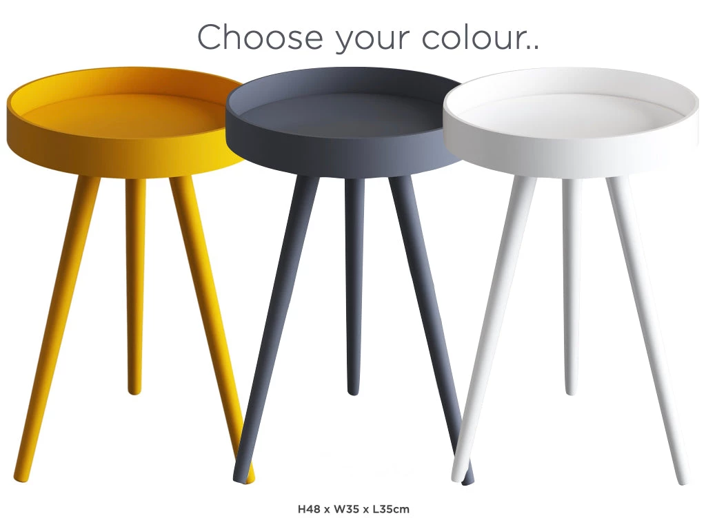 Inject colour and convenience into your living space with a stylish side table. The table features a tray-style top with a rim to keep items secure, and four spindle legs that add traditional appeal to the design. The chic table is available in a variety of trendy colours with natural finish look that emphasizes casual elegance.