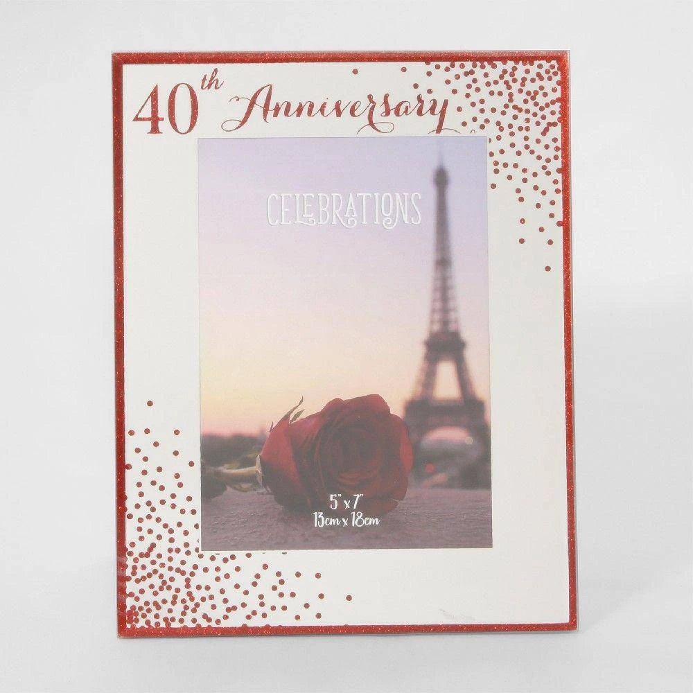 This wonderful freestanding frame makes the perfect gift for a special couple on their anniversary, ideal for displaying a memory of the couple. It features a glass mirrored frame, embellished with red glitter and the words ’40th Anniversary’ above a 5″ x 7″ aperture.