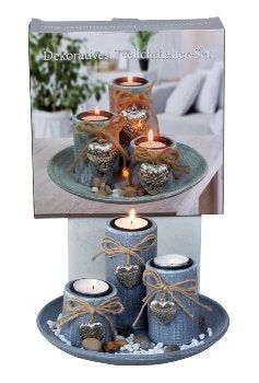 IKO GENERAL GIFTS Tea Light Holder Set With Round Plate & Heart Decoration D=20cm (Pre Order For Mid September)