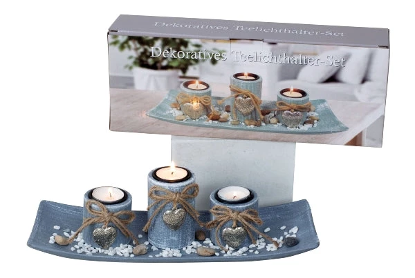 IKO Tea Light Holder Set With Heart Decoration 34x13cm (Pre Order For Mid September)