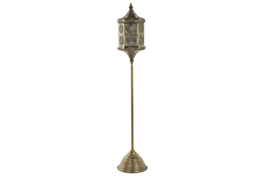 ITEM Moroccan-Arabic Style Candlestick On An Antique Gold Metal Stand.
