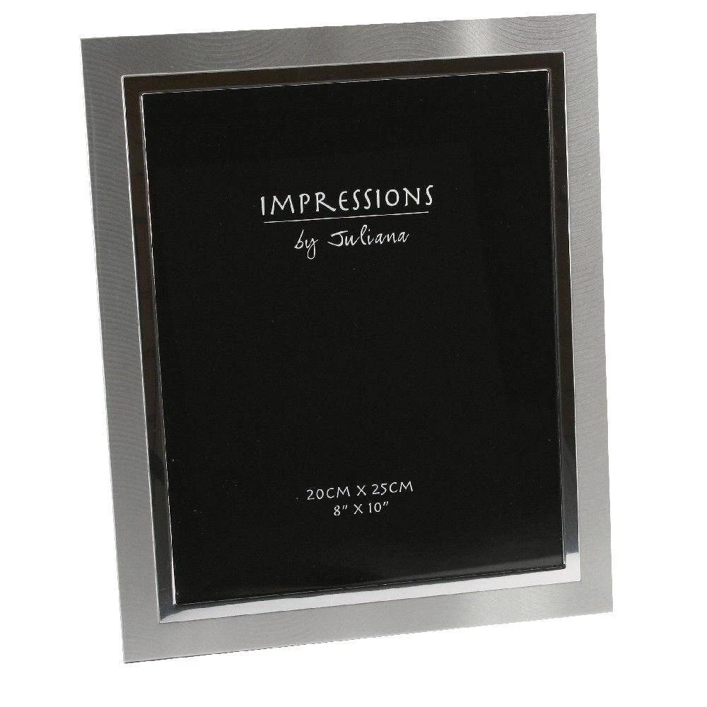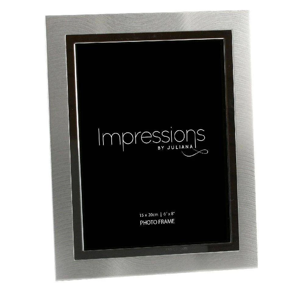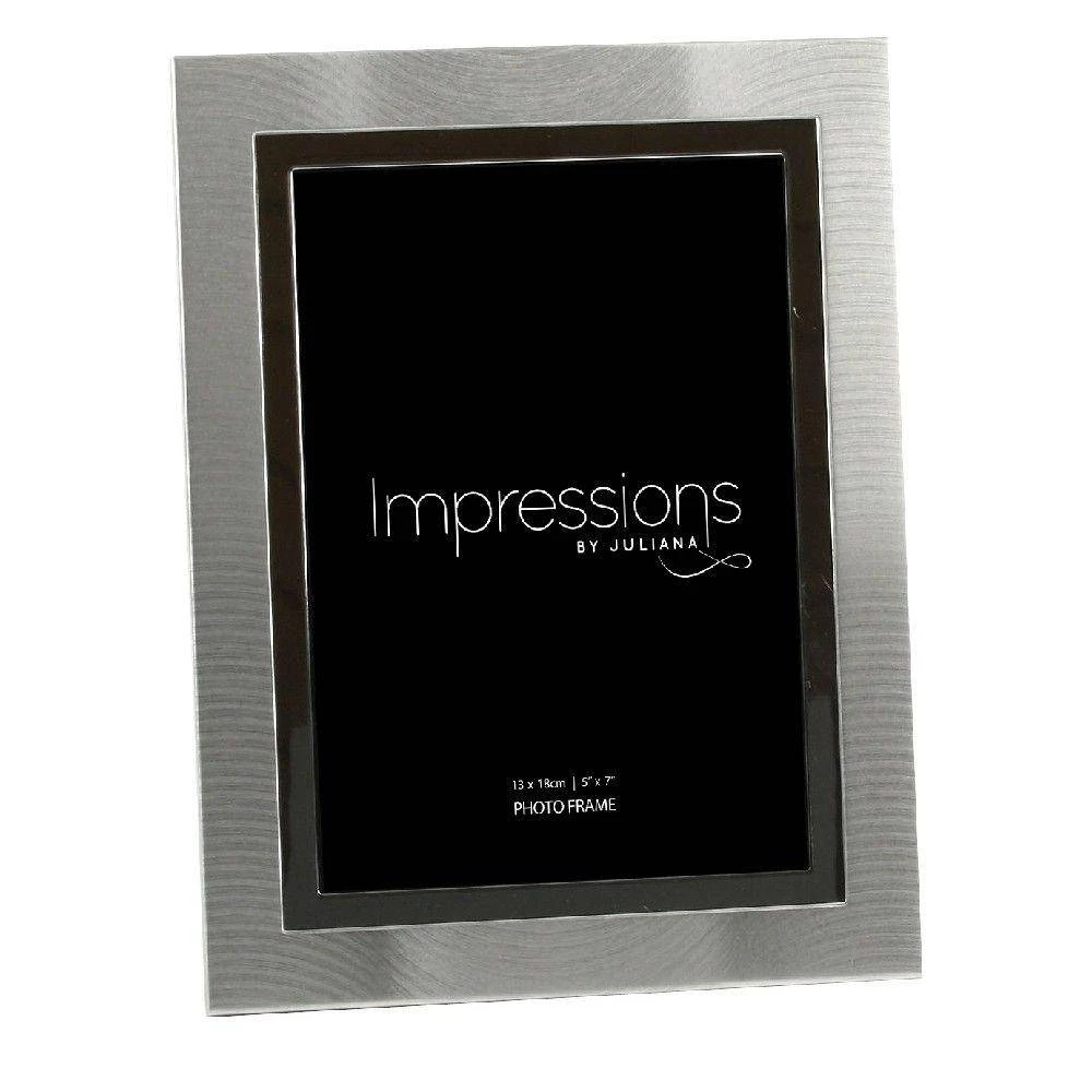 A beautifully simple two-tone brushed and polished aluminium photo frame from IMPRESSIONS® by Juliana. Featuring luxury black velveteen backing.