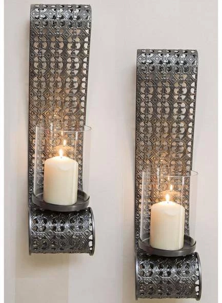 Need an eye-catching addition to your wall décor? A Wall Lantern sconce is a type of light fixture affixed to a wall in such a way that it uses only the wall for support, and the light is directed upwards. Give any room a welcoming glow with our candle sconces. With a unique scroll design and a beautiful cutout pattern in bronze, this set of metal wall sconces is an eye-catching addition to your wall decor.