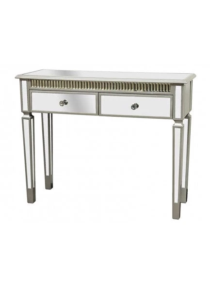 Add a touch of glamour into any home with the Faro Grey 2 Drawer Console Table. The Cliona range of furniture has a mirrored finish that will enrich your home’s light, deepen its depths and capture the colours of your walls, flooring or carpet. For added glamour the cabinet features crystal handles.