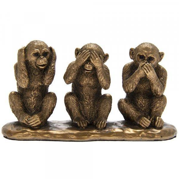 A sleek and finely finished set of posed monkey’s ornament. Bringing the proverbial of see, hear and speak no evil into your home. This unique nature inspired design has copious amount of detail throughout with a Bronze finish. A stylish home decor choice for those with luxurious,urban jungle or quirky home decor themes.