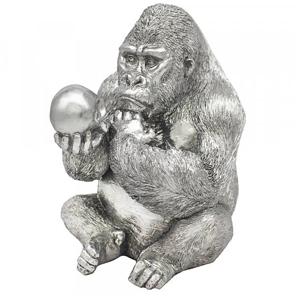 Display this Gorilla with Skull Ornament to any shelving unit and make it the centre of attention! This gorilla shaped ornament is made from resin and tells a story as he stares into the skull. Ideal for any industrial or contemporary style home.