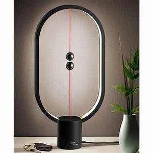 A solid wooden oval designer lamp, which can be turned on by magnetically connecting two balls in the middle.