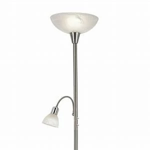 Elegant mother and child lamp with alabaster glass with a combination of metal. The Mother floor lamp helps create an ambient atmosphere, with the Child light ideal for higher-powered directional light suited to reading or other hobbies. Each light source has its own switch.