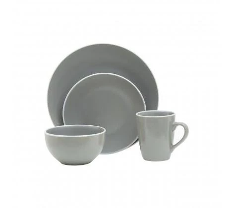 This two toned, grey and white, dinner set is a simple monochromatic addition to tableware. The 16pc set includes 4 dinner plates, 4 side plates, 4 bowls and 4 mugs.