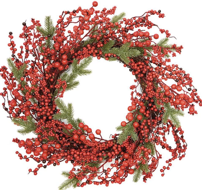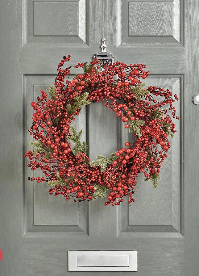 Premier Housewares CHRISTMAS SHOP 50CM Red Berry Rattan Christmas Door Wreath