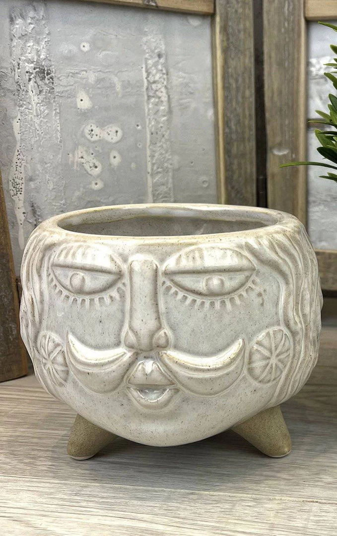 Captivating the beauty this classical face Boho plant Pot is a striking piece with intricately detailed facial features. This exquisite plant pot will look utterly enchanting styled with some green foliage.