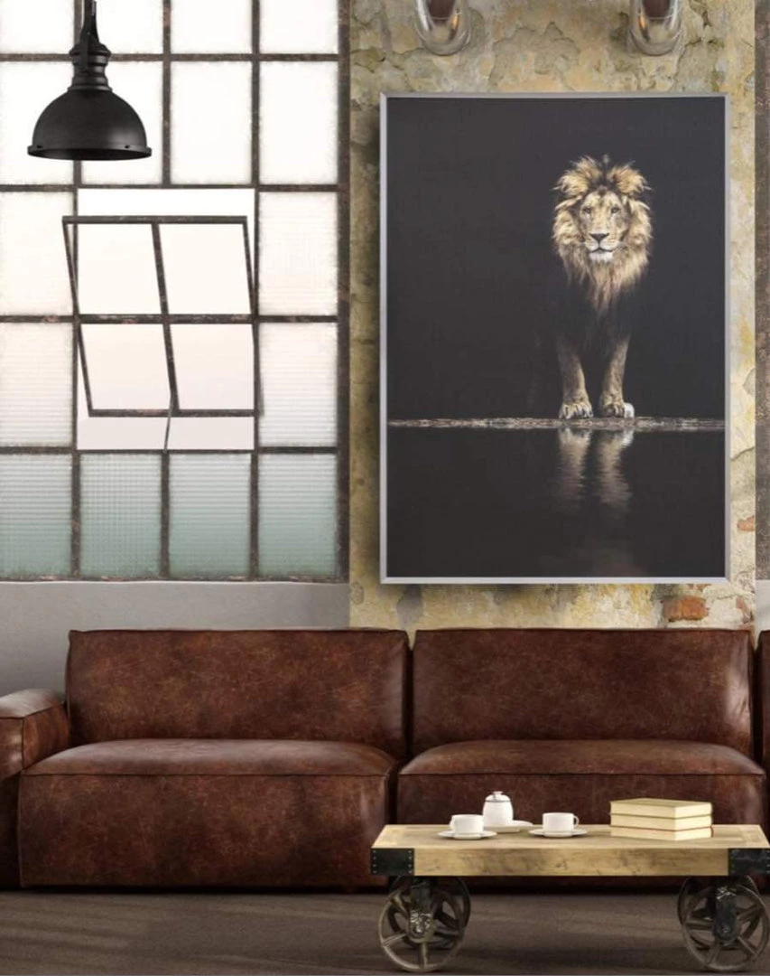 Stop what you’re doing and look at this majestic lion… This lion sure knows how to work his angles…. The proud mane swings in the wind and his eyes are focused on something far away in the distance. The elegant color scheme fits in well with almost any wall and can be combined well with existing accessories.