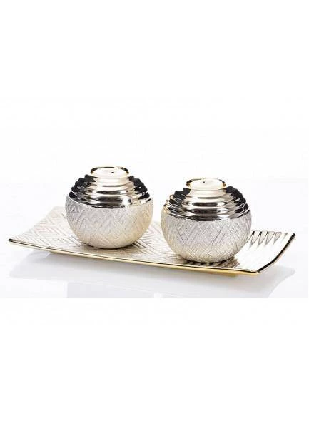 Beautiful Champagne Tray with 2 tea lights from The Grange Collection. This is a beautiful little tray and candle holder set. When the candles are lit, it heightens the ambience of the room. Simply beautiful.