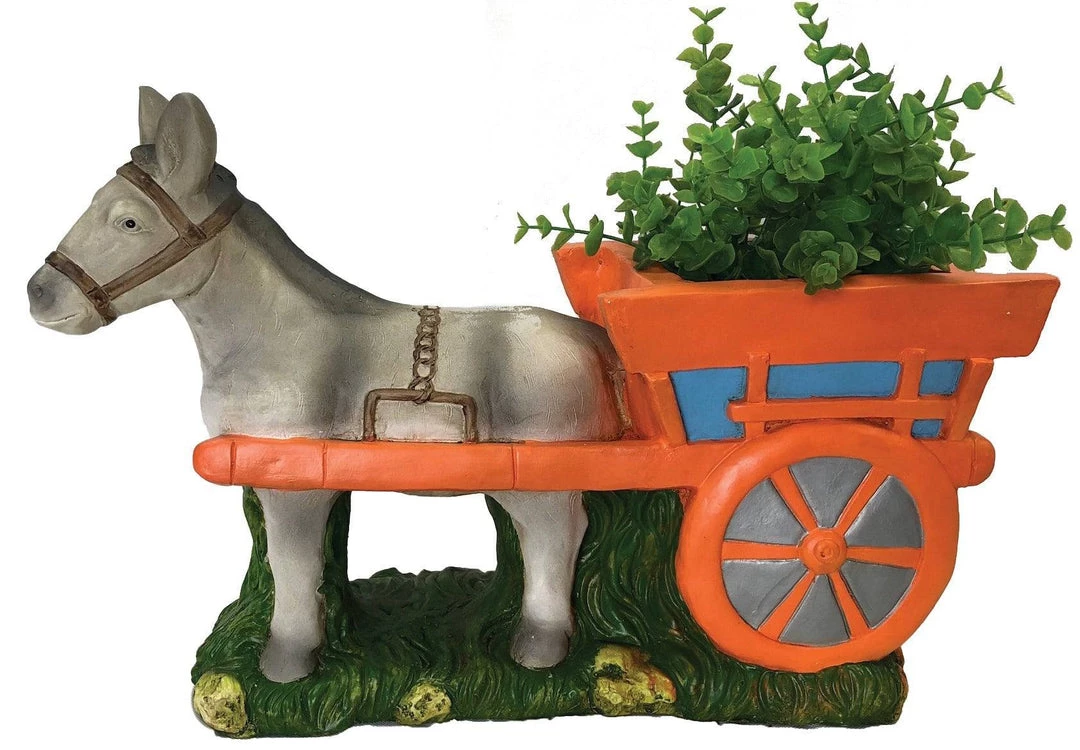 Give your outdoor space some down-on-the-farm charm with this cute Donkey with Cart Planter. It was a sight that would have not been out of place decades ago. This cute looking Donkey is sitting resting waiting for his cart to be filled with lovely blooms.