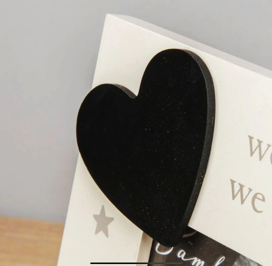 A gorgeous 4″ x 3″ (10x8cm) baby scan photo frame from the BAMBINO BY JULIANA® Collection. The frame features a silver star design with a black chalk board heart for numbering how many weeks until the little one arrives. The titling reads, ‘weeks until we meet our little miracle’. Complete with standing strut and chalk stick.
