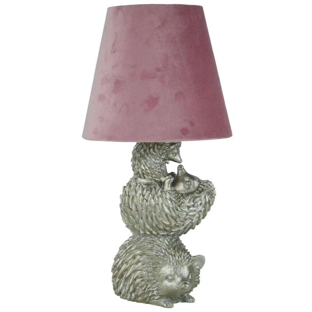 WJSampson GENERAL GIFTS SILVER HEDGEHOG LAMP W/BLUSH VELVET SHADE 23X23X40CM