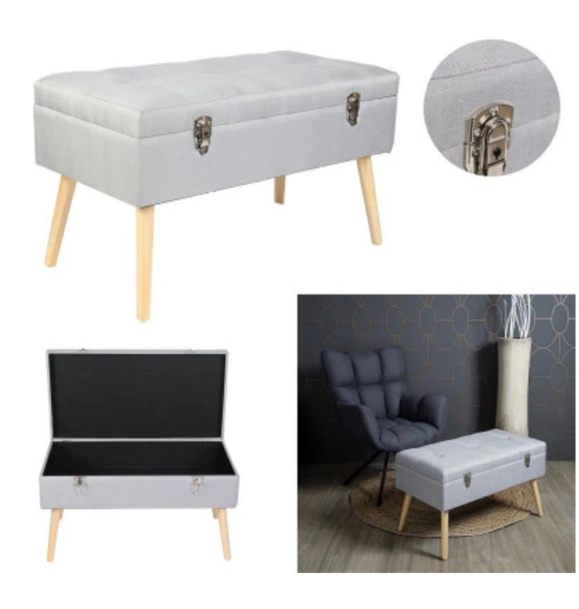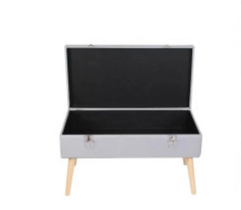 Add some travel-inspired luxury to your interior with this suitcase Bench. Tailored in grey upholstery the stool features decorative silver buttons. It’s sleek slender legs perfectly tone down the piece and give it a minimalist touch. The stool can be opened just like a real suitcase and provide capacious storage for all your bits and pieces. Perfect for creating characterful storage inside your home.