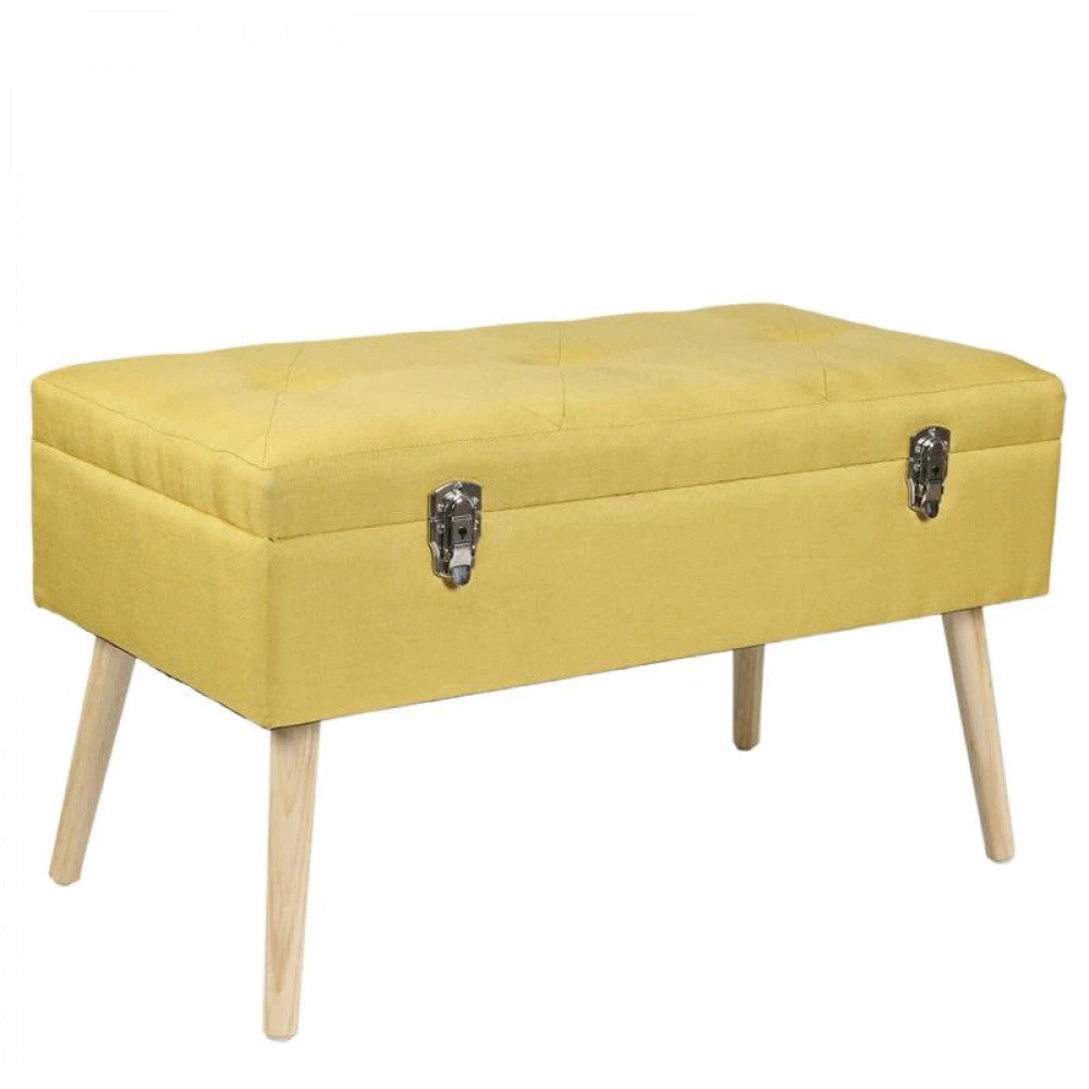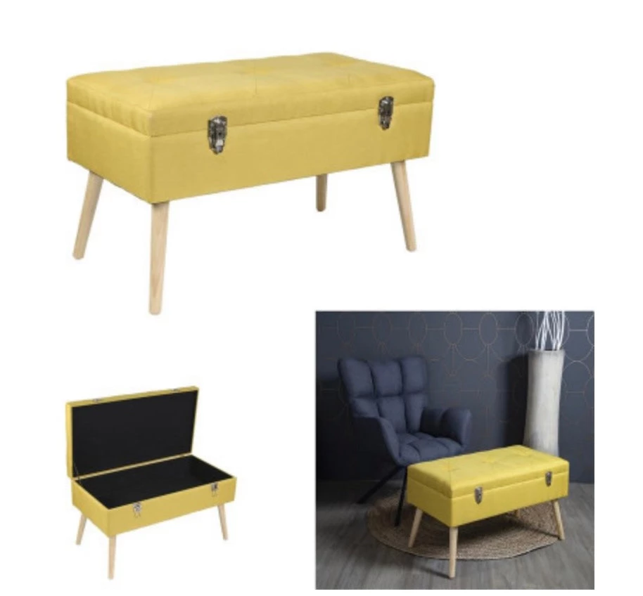 Add some travel-inspired luxury to your interior with this suitcase Bench. Tailored in yellow upholstery the stool features decorative silver buttons. It’s sleek slender legs perfectly tone down the piece and give it a minimalist touch. The stool can be opened just like a real suitcase and provide capacious storage for all your bits and pieces. Perfect for creating characterful storage inside your home.